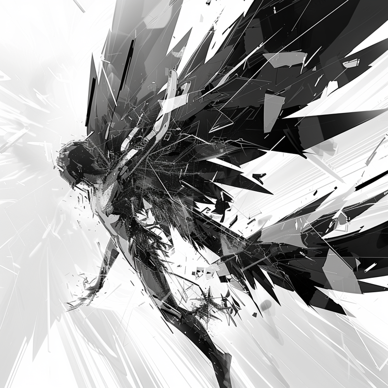 Shadowbyte explores the intricate dance between disintegration and unification, where the disruptive power of technology shatters traditional human forms, converging into a powerful, transcendent human experience.